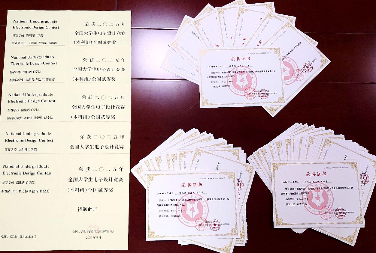 日前,2025年全国大学生电子设计竞赛结果揭晓。我校电子信息学院和电力电气工程学院代表学校参赛,共获得国家二等奖5项,河南省一等奖8项、二等奖19项、三等奖24项,国家奖和省奖数量均取得历史性突破。