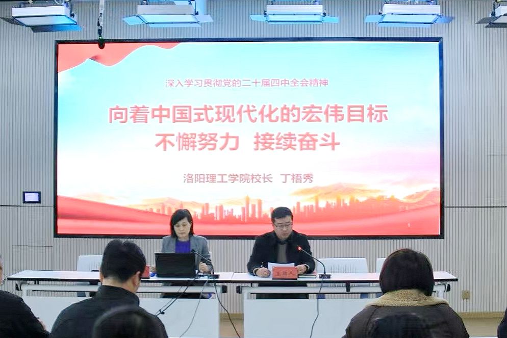 丁梧秀要求,深入学习宣传贯彻党的二十届四中全会精神是当前和今后一个时期重大政治任务,广大师生要切实提高政治站位,不断增强学习宣传贯彻全会精神的政治自觉、思想自觉和行动自觉,更加深刻领悟“两个确立”的决定性意义,不断增强“四个意识”、坚定“四个自信”、做到“两个维护。”要把学习贯彻全会精神与贯彻落实学校第三次党代会确立的发展目标结合起来,决战决胜申硕工作,提高学校办学层次,加快建设特色鲜明的高水平应用型大学,努力了把学习成果转化为推动学校高质量发展和高效能治理的生动实践。