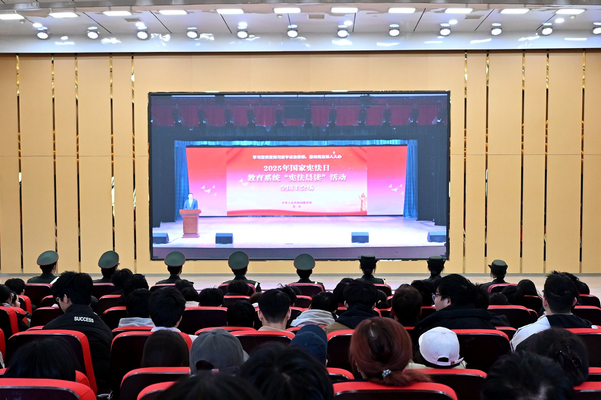 为全面贯彻落实党的二十届四中全会精神,深入学习贯彻习近平法治思想,加强宪法教育,弘扬宪法精神,维护宪法权威,12月4日上午,我校在开元校区图书馆报告厅举行第十二个宪法日“宪法晨读”活动。