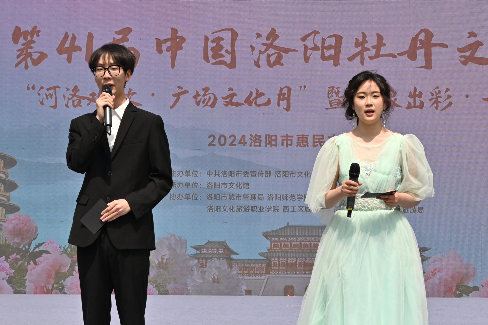 近日,第41届中国洛阳牡丹文化节“河洛欢歌•广场文化月”活动在洛阳市周王城广场举行。来自我校教育科学与音乐学院,学生社团UG-Power街舞社、管乐团、民乐协会、相声小品协会的百余名师生参加了本次演出。