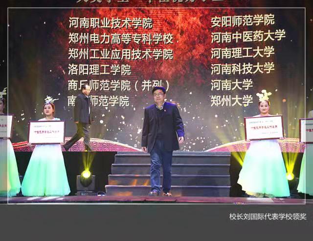 12月5日,由中共河南省委高校工委、河南省教育厅主办,河南大学、教育时报承办的河南省普通高等学校第二届“大美学工”颁奖典礼暨第二届校园文化建设优秀成果展演在河南大学举行。省教育厅副巡视员李金川、省教育厅学生处处长王继东出席了颁奖典礼,我校校长刘国际出席颁奖典礼并代表学校领奖。校学生处负责人、校团委相关老师、辅导员和学生代表参加了颁奖典礼。